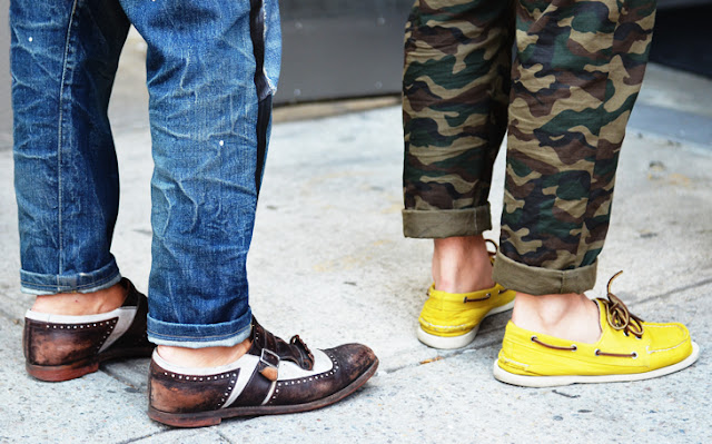 Our favorite styling tip for the gents right now is to add a fantastic pair of shoes. Oxfords, loafers, boat shoes you name it we love it. Take it to a whole new level by pairing them with an awesome pair of socks and some cuffed up skinnies.
